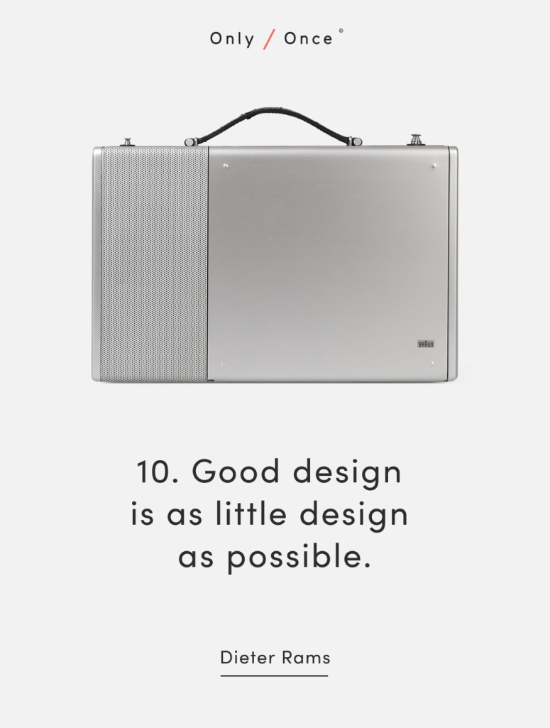 Dieter Rams design philosophy of "Less, but better." along with his famous 10 principles are building the fundamentals of the successful & iconic Braun designs which have ultimately inspired other famous brands (such as Apple) and designers (ie. Johnathan Ive) across the world. With no further ado, here are the ten fundamental principles of good design: