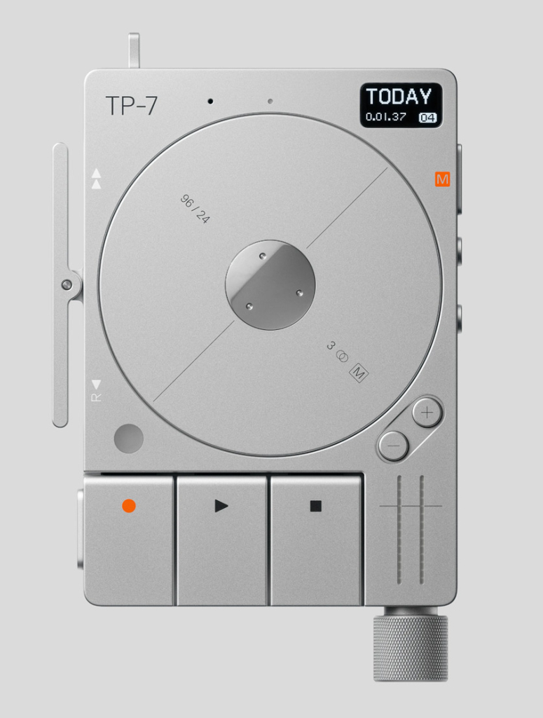 Among the many intriguing products showcased, the TP-7 stood out as a masterpiece that we instantly fell in love with. Its sleek, minimalistic design pays homage to the timeless appeal of classic audio devices while introducing a fresh, modern twist. ## The TP-7’s most captivating feature is the rotating disk, which transforms the act of playing and recording music into a tactile, almost ritualistic experience. The forward, backward, and side buttons are intuitively placed, enhancing the device’s usability without compromising its aesthetic integrity. The TP-7’s small display with a pixel font adds to its charm, offering a perfect blend of retro and contemporary design elements. The haptic feedback of the buttons further enriches the user experience, making every interaction with the device a delight. See more: https://teenage.engineering/products/tp-7