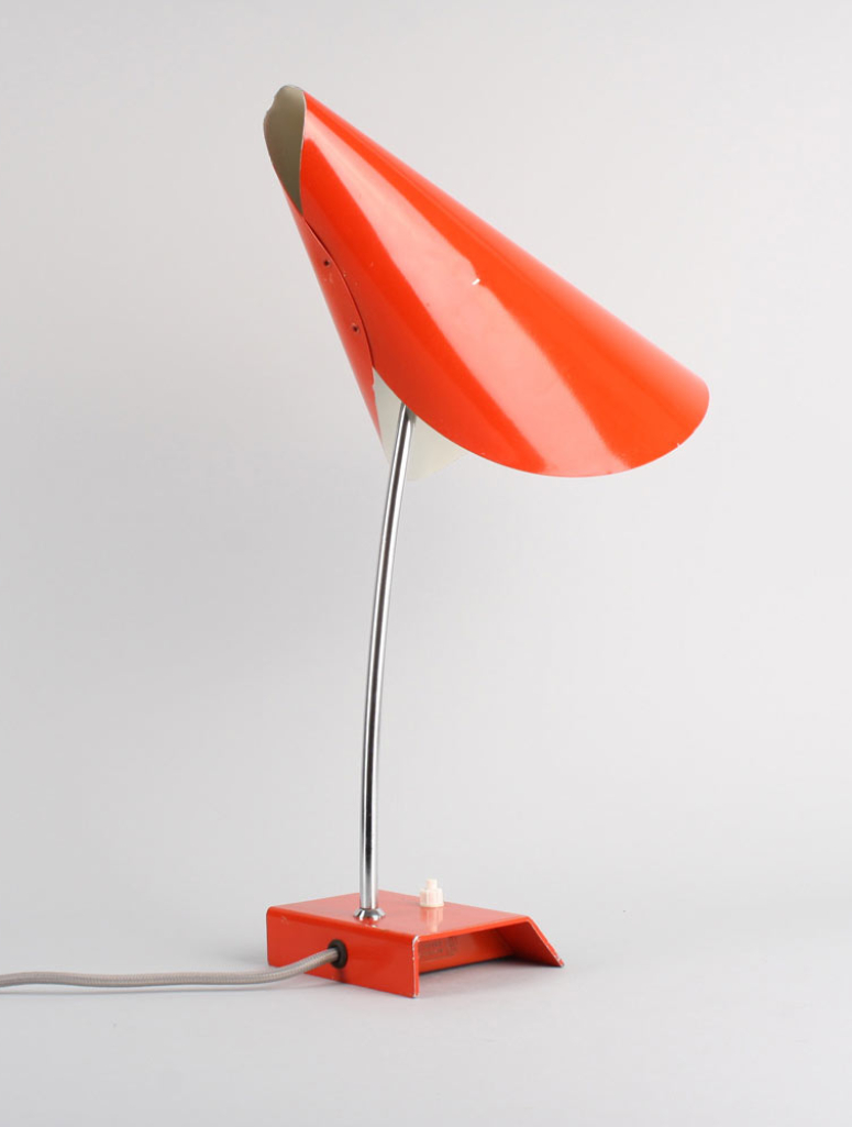 The luminaires were created during the communist era, when art and architecture were united. Only the product and lighting designers enjoyed a certain amount of freedom, which they were able to use skillfully. One of our favorite vintage design lamps by Josef Hurka is the so called „nun“ lamp that shows a very playful design approach and originality like no other. The combination of chrome parts that are well preserved up to this day with its metallic painted shade and base in bright dark orange colors are truly beautiful. The lamps from the Czechoslovakian Brussel series are very rare and hard to source. Despite the fact that the lamps are already more than 70 years old you will find beautiful functioning and reclaimed original lamps in our Only/Once shop.