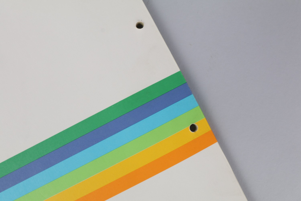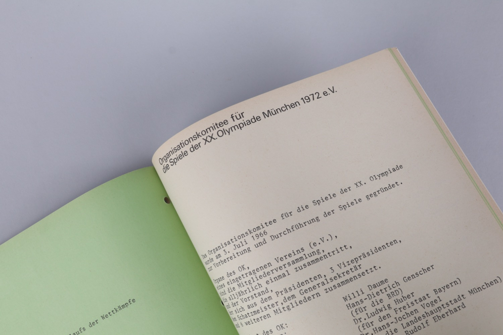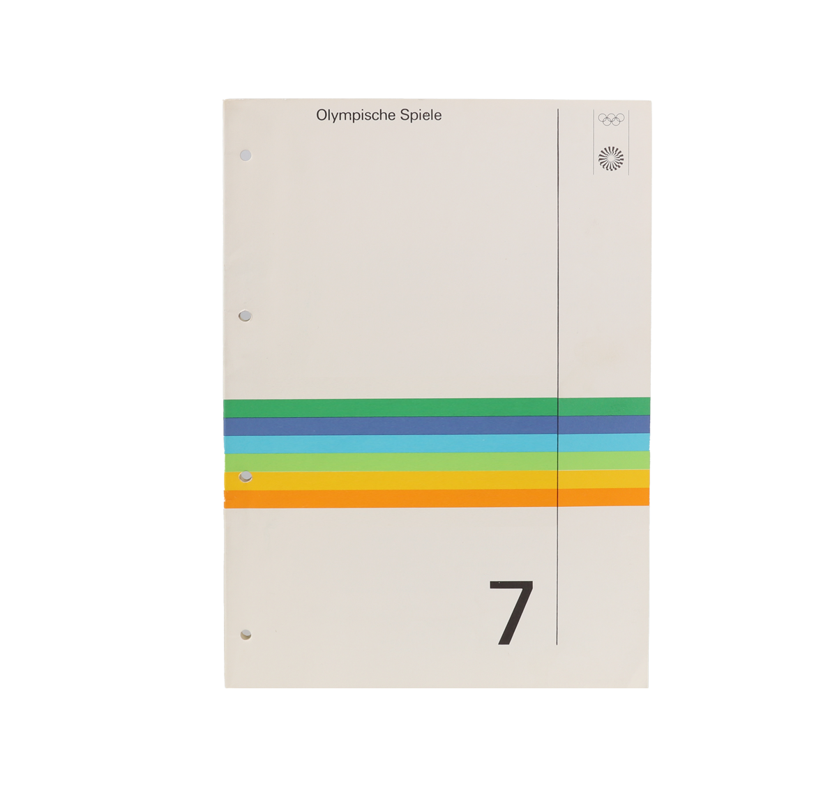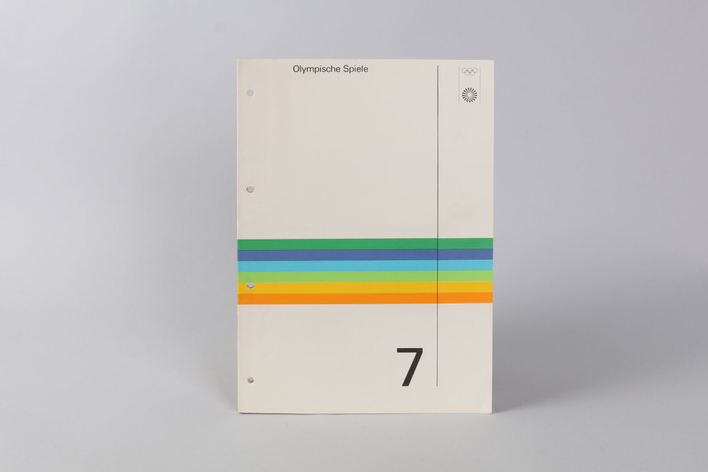 A unique piece of sports history with this rare Textbook/ learning program, designed by the renowned designer Otl Aicher for the 1972 Munich Olympic Games with the iconic wordmark and colorful rainbow pattern. A must-have for collectors and sports enthusiasts alike, this learning program not only celebrates a pivotal event in Olympic history but also showcases Aicher's iconic and legendary brand identity. Original / no reprint.