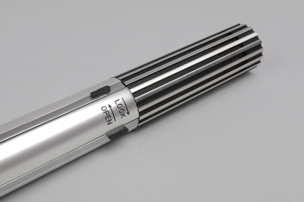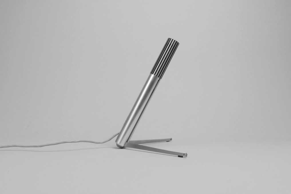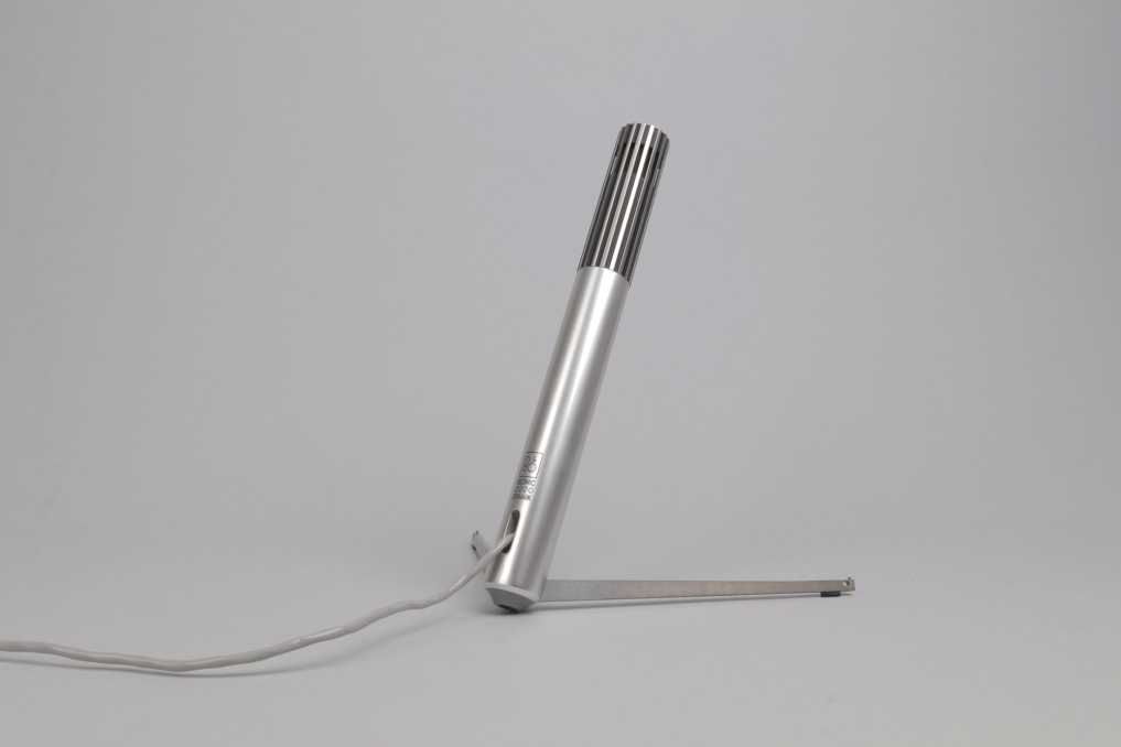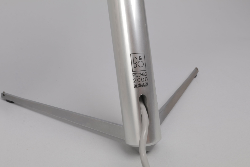 Bang & Olufsen Beomic 2000 Microphone designed by legendary designer Jacob Jensen. The microphone received the IF award In 1970 and has been added to the MOMA (Museum of Modern Art in New York) in 1979. The Beomic is made of Brushed aluminum, by rotation the upper part, it releases its feet which makes it stand in a beautiful elegant angle. It comes in an excellent condition, containing the original packaging which alone is a piece of timeless design. The microphone is fully functional and can be used with an adapter on modern devices. Sold as a decoration piece for Bang & Olufsen collectors.