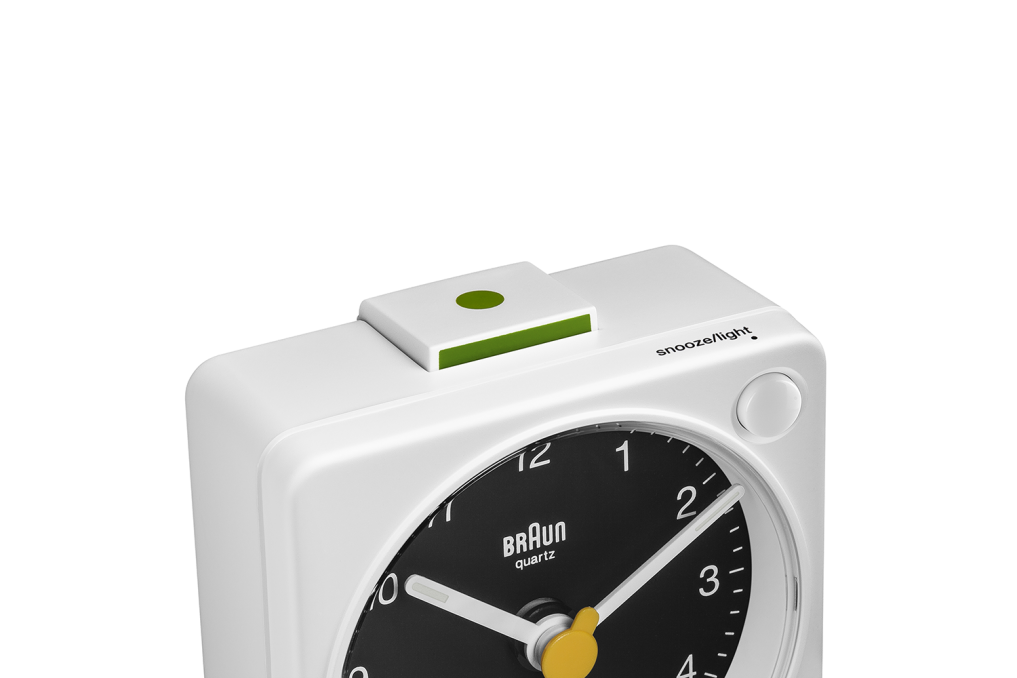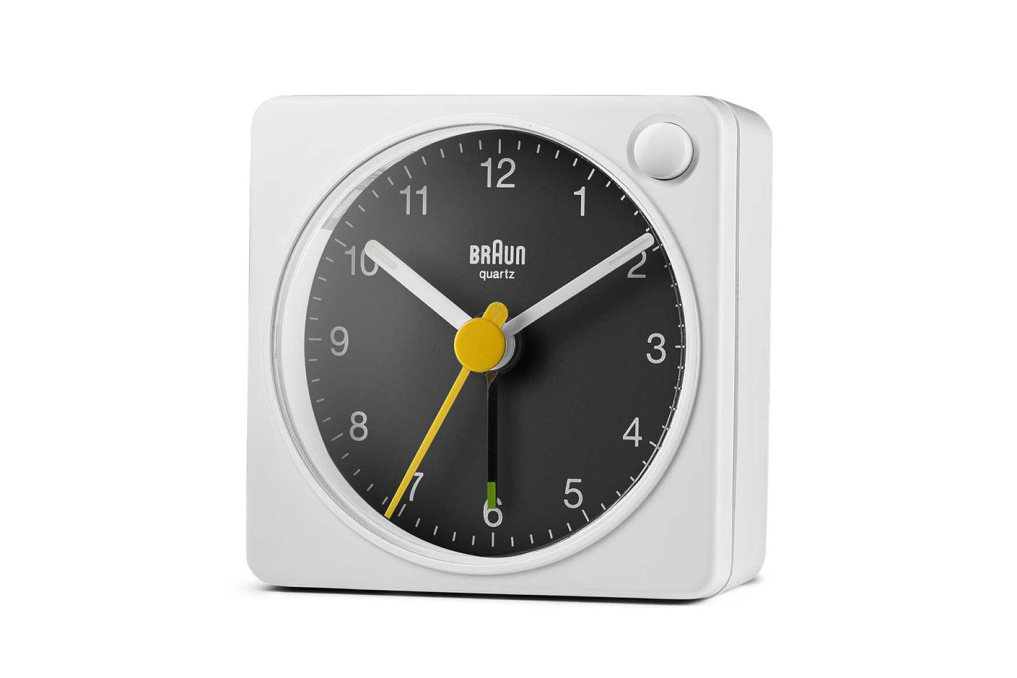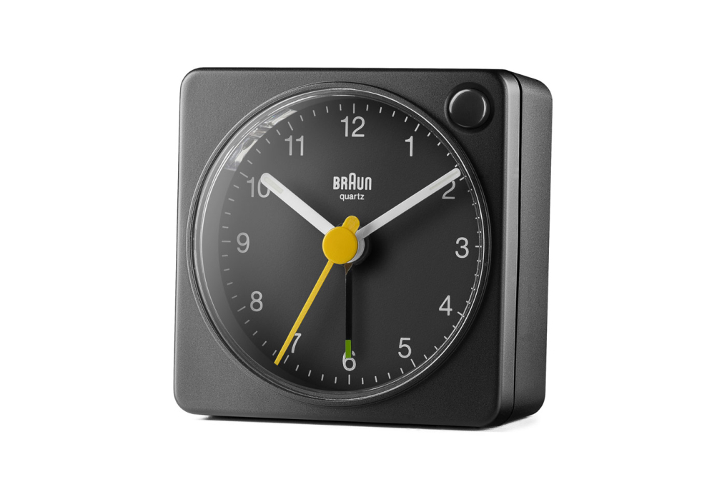The BC02XB classic travel analogue alarm clock features an easy to read dial layout and the iconic yellow second hand that has become synonymous with Braun’s award winning design history. The design of the BC02 originates from the renowned AB 1, designed in the late 80’s by Dietrich Lubs. Updated to include an improved movement and luminous tipped hour and minute hands. The clean simplistic dial and contrasting hands with luminous tips offer great legibility, and the quartz tick movement is quiet and precise. Its compact size (W5.7cm x H5.7cm x D2.7cm) and lightweight construction make it an ideal travel companion. Battery Type: AA *Not Included / Includes: Clock, instruction manual & 2 year warranty