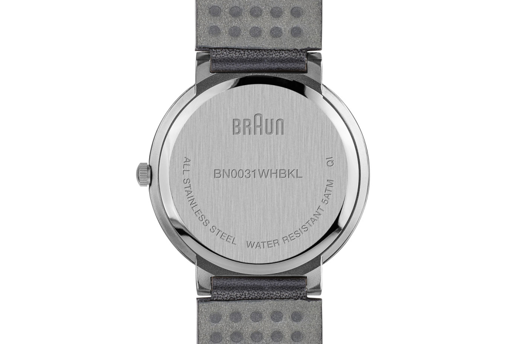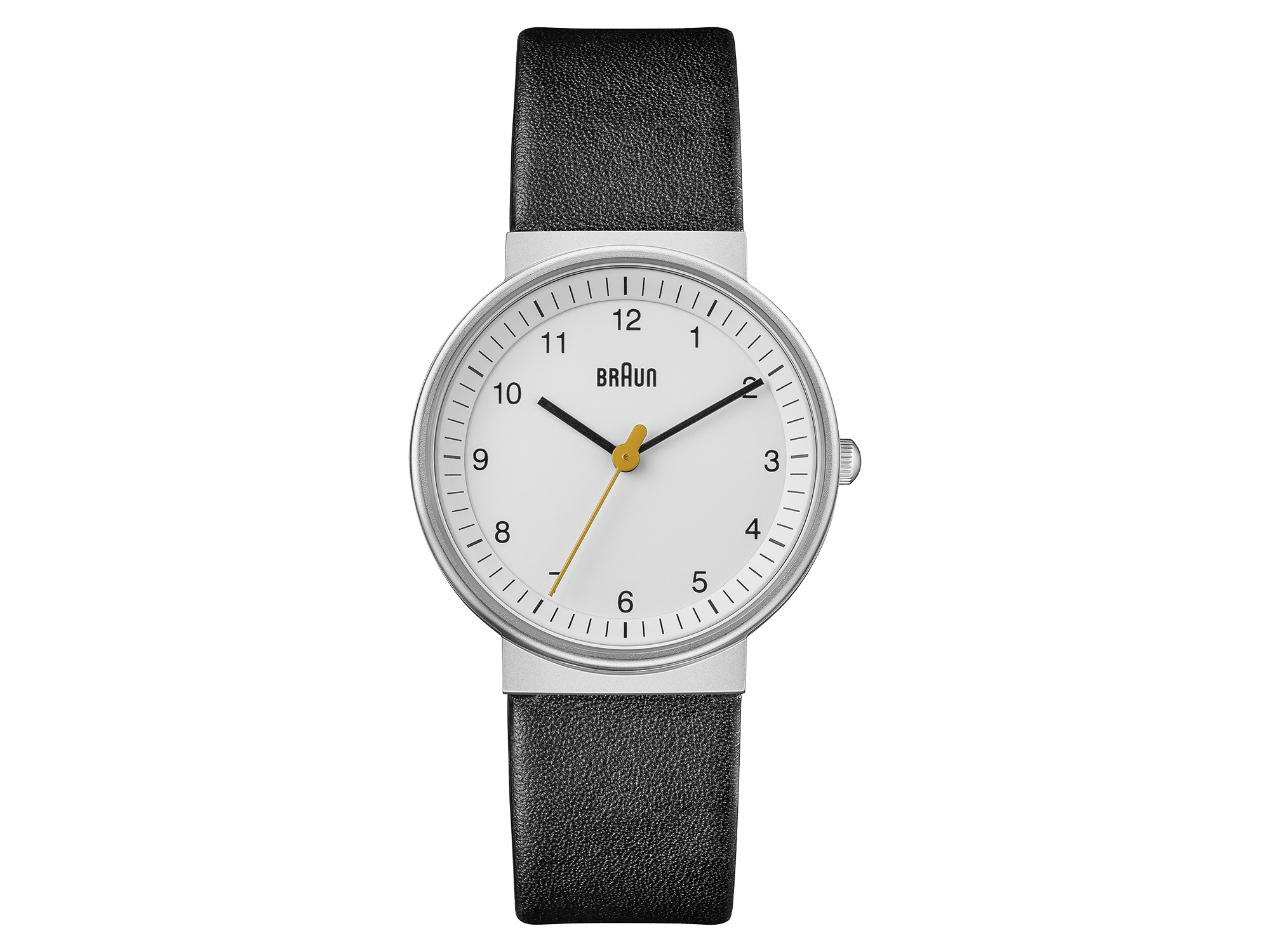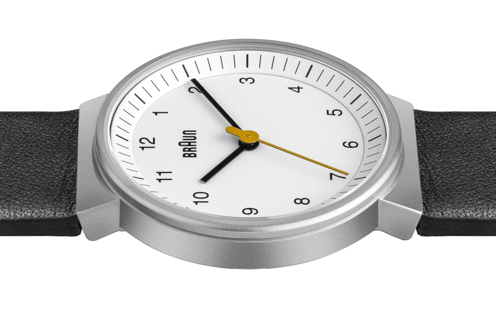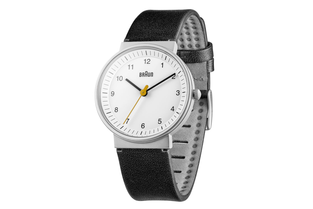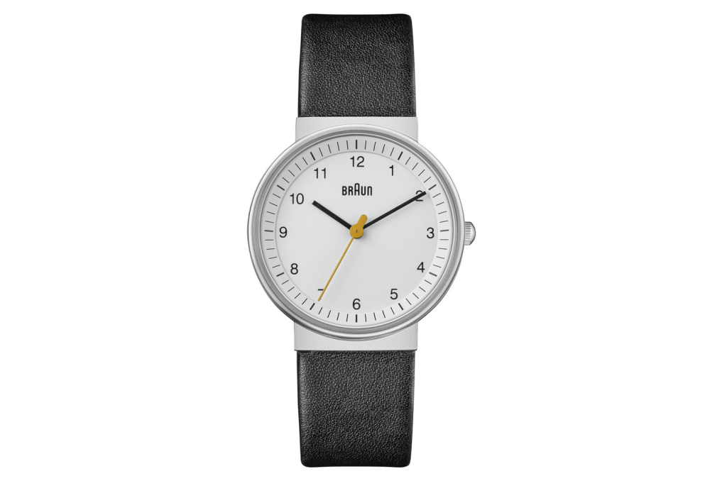 This Braun classic watch has an easy to read dial layout and features the iconic yellow second hand that is synonymous with Braun’s award winning design history. The clean simplistic dial and contrasting hands offers great legibility, and houses a precise quartz movement. Specifications: Case Diameter: 32mm / Case Depth: 7.95mm / Case Material: Stainless Steel /Dial Colour: White / Strap Width: 18mm / Strap Material: Leather Black / Clasp Type: Pin and Buckle / Movement: Quartz / Water Resistantance: 5ATM / Glass: Mineral Glass / Includes: Watch, presentation box, instruction manual & 2 year warranty