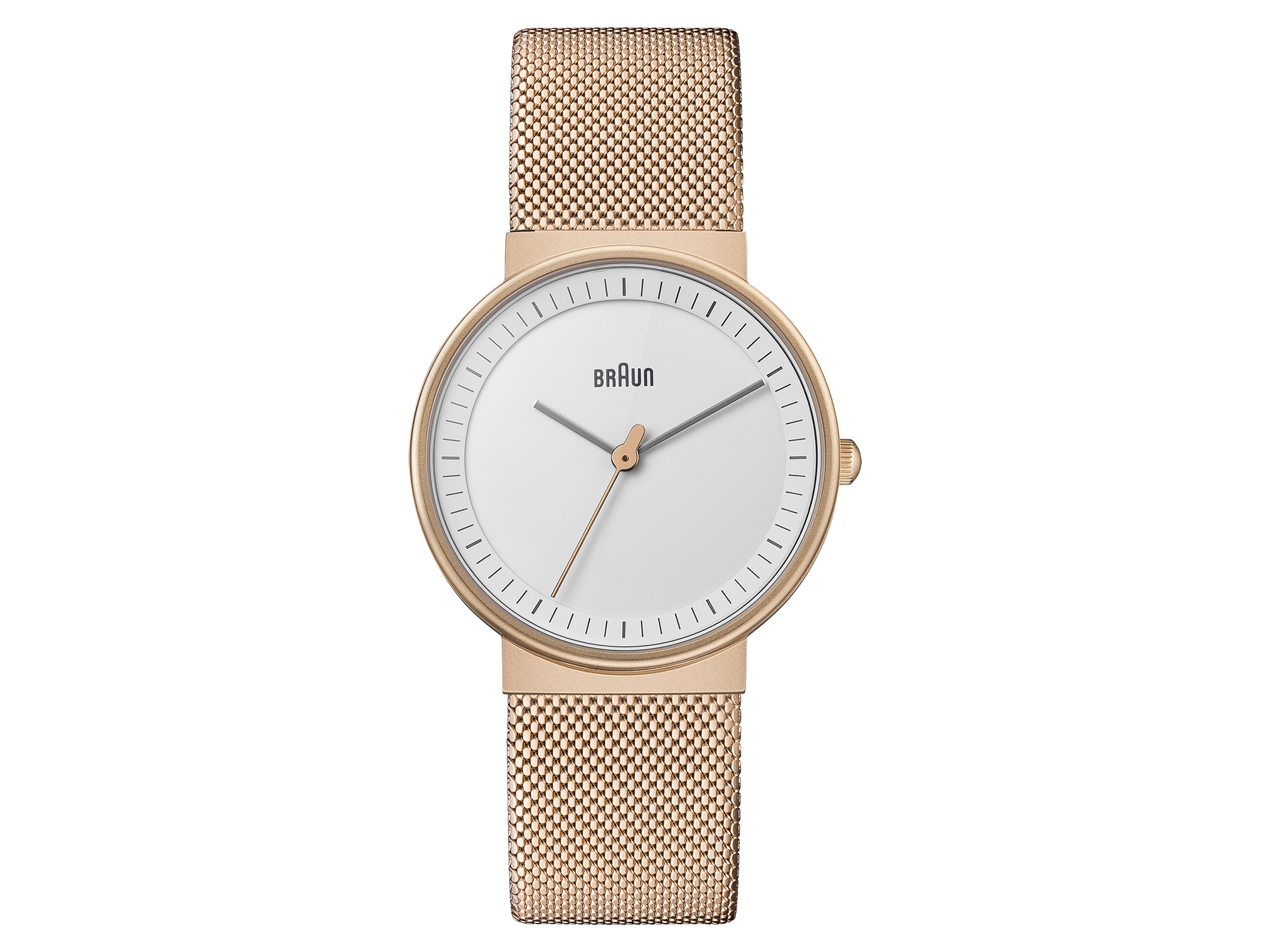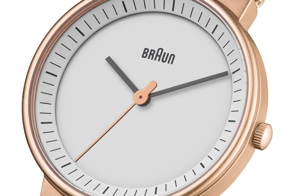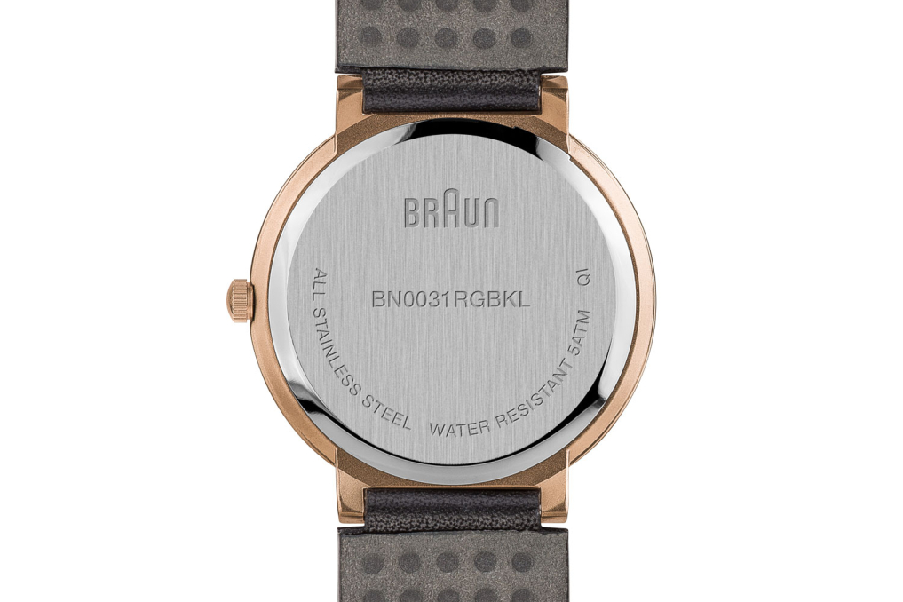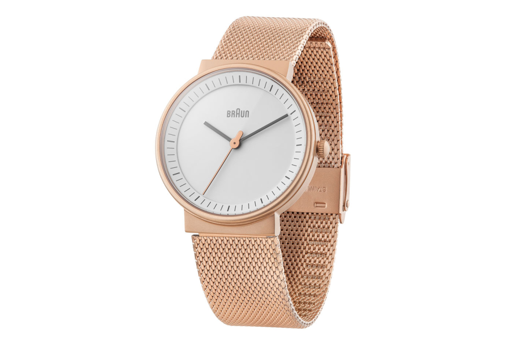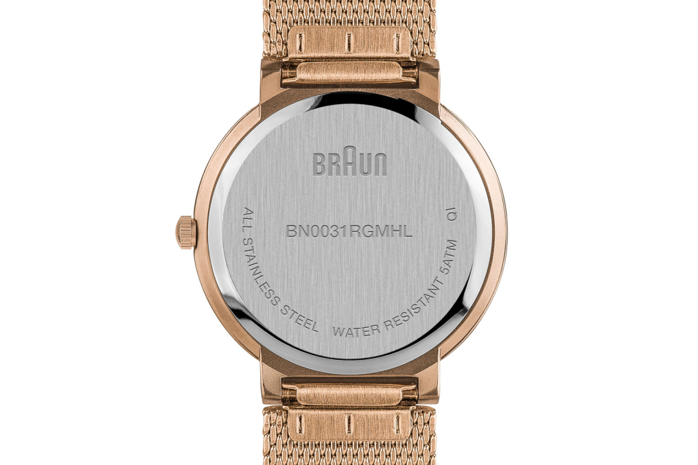 This timepiece is a classic interpretation of Braun core values of functionality, quality and aesthetics. A true embodiment of Braun’s award-winning clean approach to design. Specifications: Case Diameter: 32mm / Case Depth: 7.95mm Case Material: Stainless Steel / Colour: Rose Gold/White or Black/Gold Rose / Strap Width: 18mm / Strap Material: Stainless Steel or Leather / Clasp Type: Sliding Clasp / Movement: Quartz / Water Resistantance: 5ATM / Glass: Mineral Glass / Includes: Watch, presentation box, instruction manual & 2 year warranty