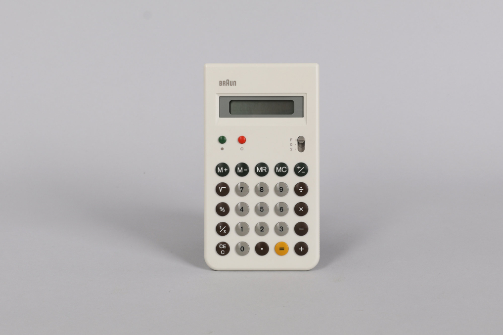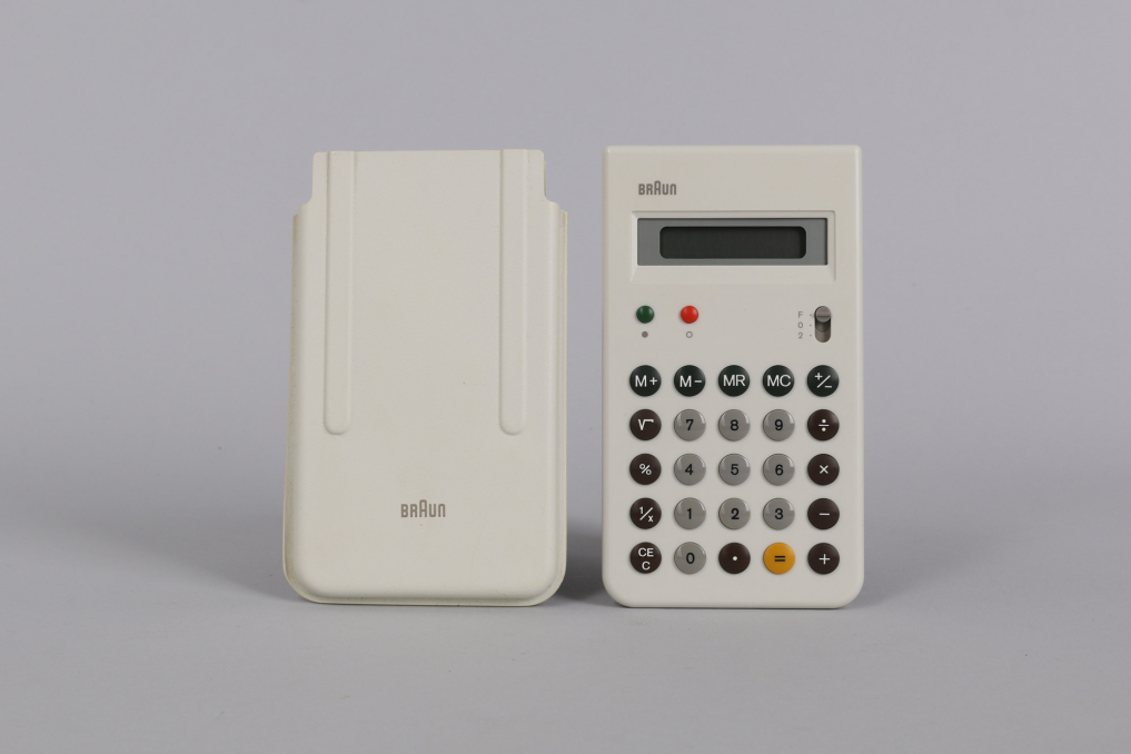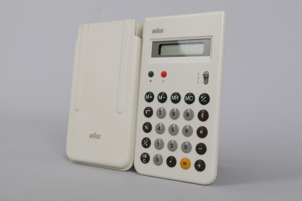 Original Braun BRAUN calculator in rare white color designed by Dieter Rams and Dietrich Lubs. Excellent working coniditon including cover. Rare and simply beautiful.