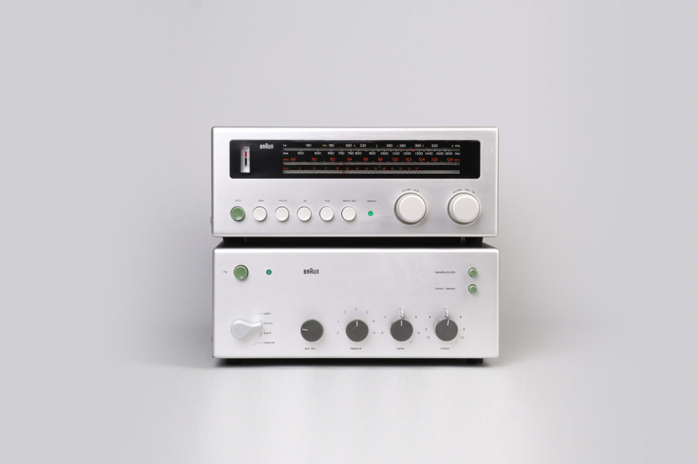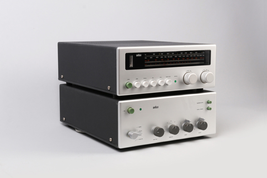 Braun Hi-Fi set consisting of Braun CSV 250/1 amplifier and CE 500 radio tuner designed by Dieter Rams. Great working condition: Both units are perfectly working and have been restored by our Braun technician (transistor changes) and come in a great outer condition - see images. The (link: https://onlyonce.com/product/acron-300-c-hi-fi-speakers text: Acron speakers) are available separately and not part of the set. Both, Amplifier & Radio units are also available separately - please contact us in this case.