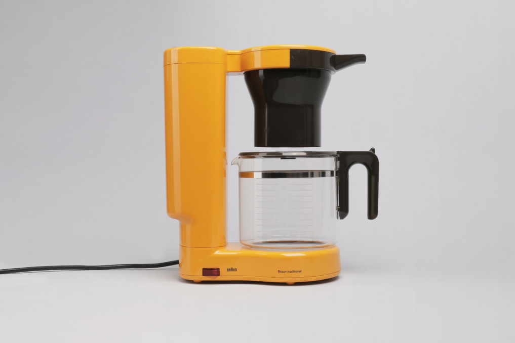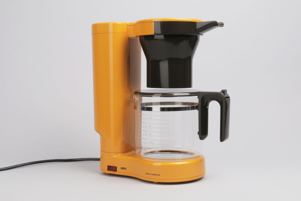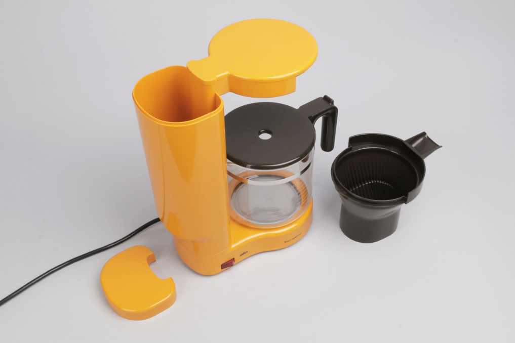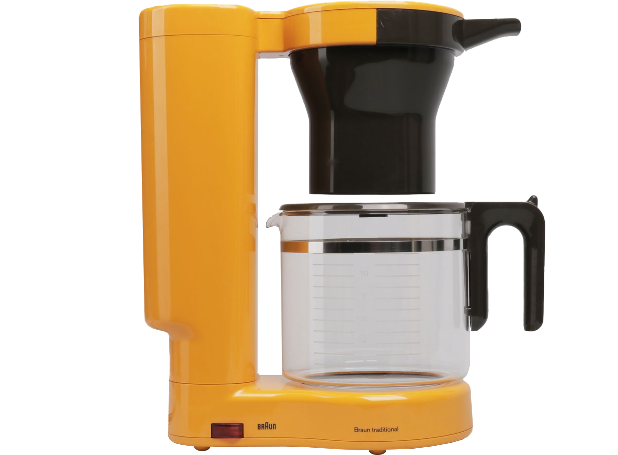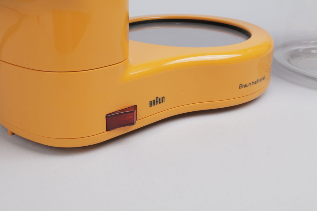 This very rare Braun KF 35 is a successor of the Braun KF 20 and was designed by Hartwig Kahlcke in 1978. The yellow coffee maker is using one central heating. The name 'Traditional' (from Braun AG KF 35, Typ: 4053 Kaffeemaschine traditional) refers to the machine' s interrupted drip flow, which emulates a traditional pour over brew method. The coffee machine is in an excellent condition (almost as new) and fully operational. (220V / 40-60HZ, &50W - DE plug)