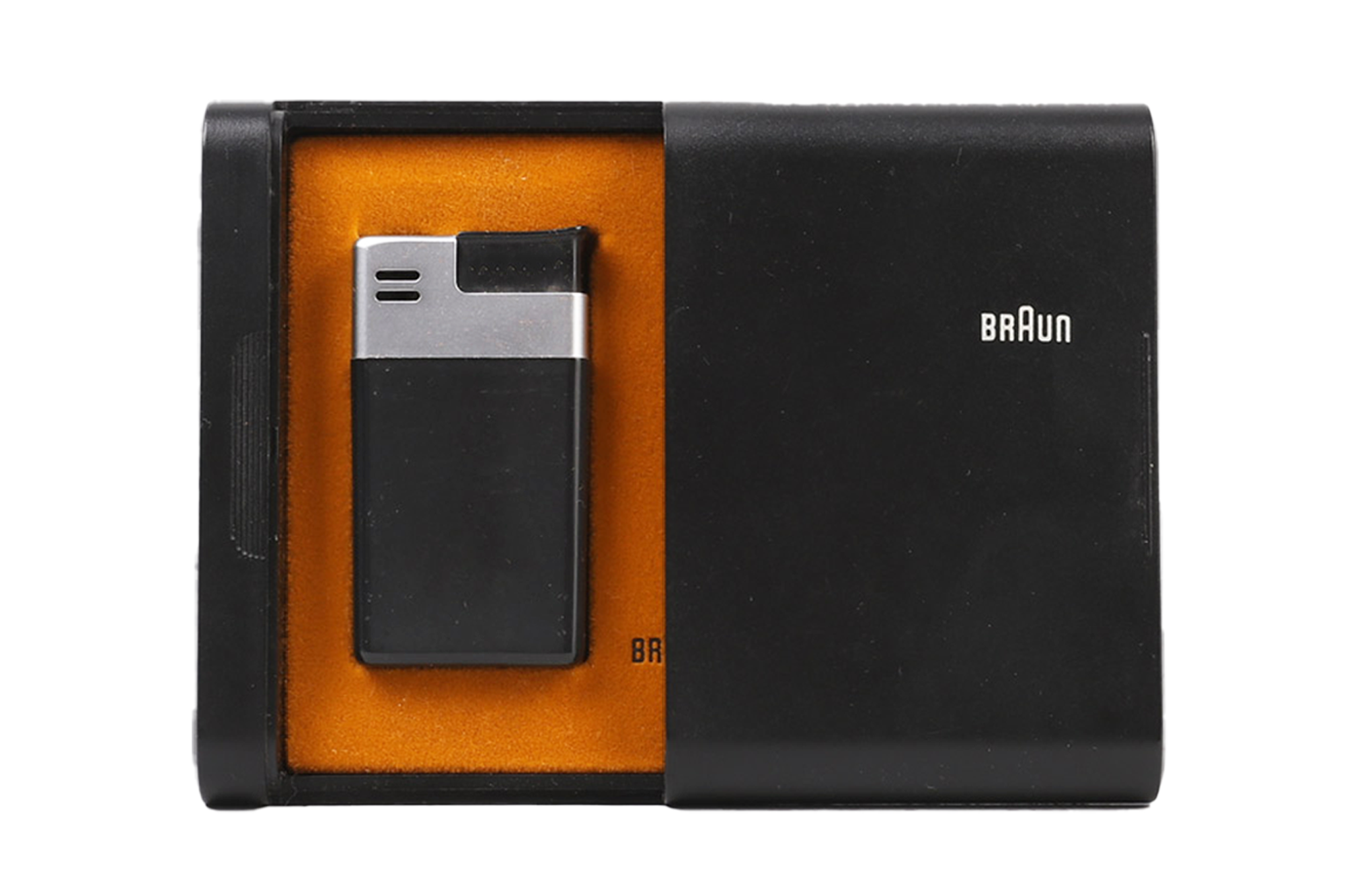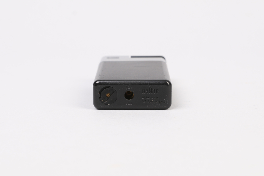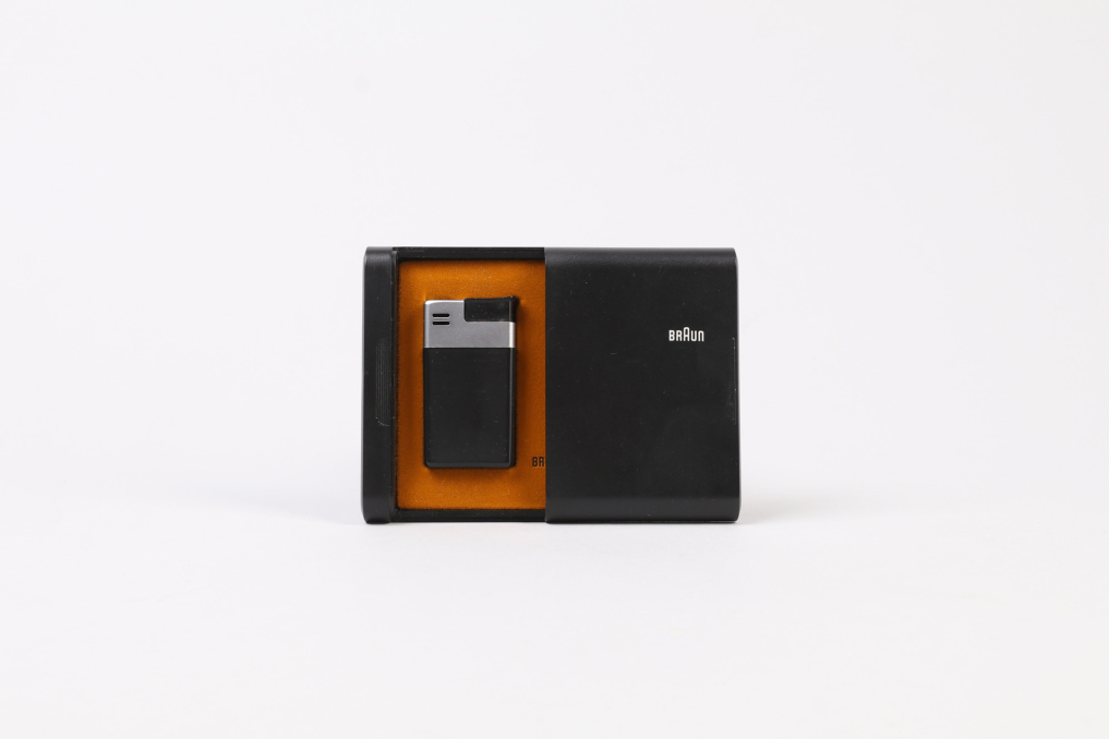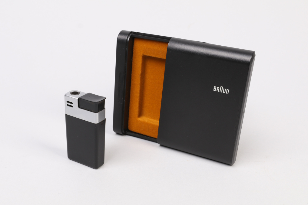 Original design classic pocket lighter Mach 2 by BRAUN in Frankfurt, Germany. Designed by legendary Dieter Rams / Seiffert in 1972. Material: silver brushed metal + plastic cover. Condition: Working and well preserved! Comes inside original plastic packaging box (size box: W 9 x L7,5 x H 2 cm).