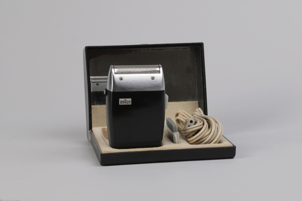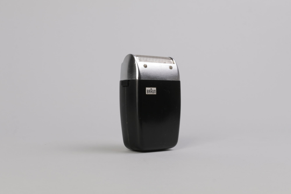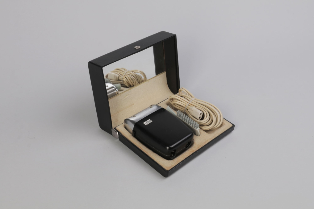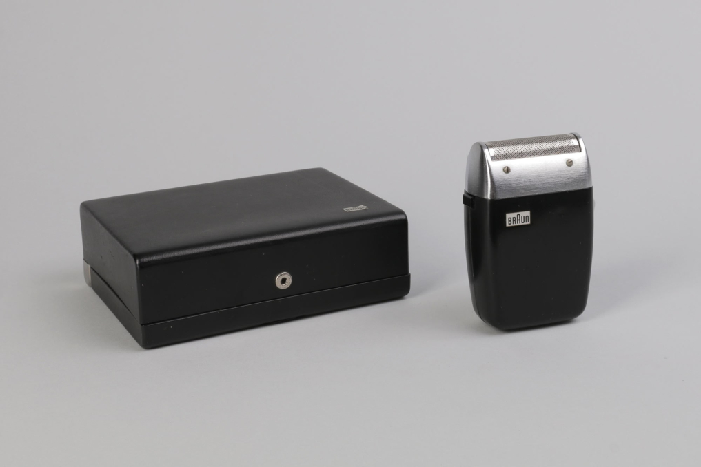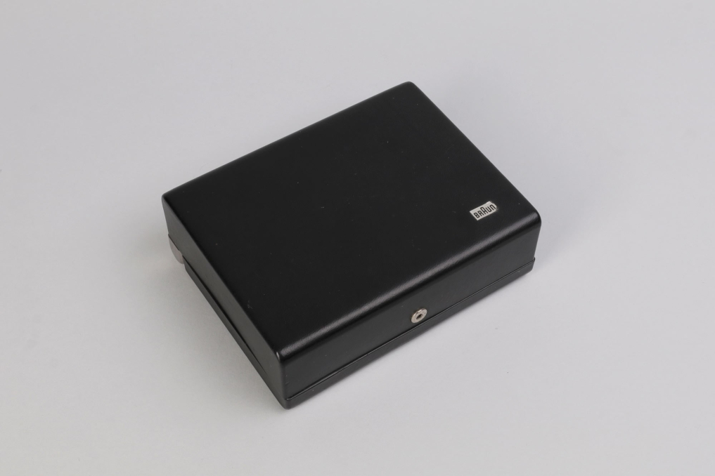 Black Braun Sixtant 1 razor designed by Hans Gugelot in 1961. The constructively best and formally most precious electrical razor of the sixties worldwide. For the first time, Hans Gugelot raised the effect of black and silver up to a presentation value. From now on, these colours should become part of the corporate identity of Braun Inc. Condition: working & functional. Including packaging box with wire & cleaning brush.