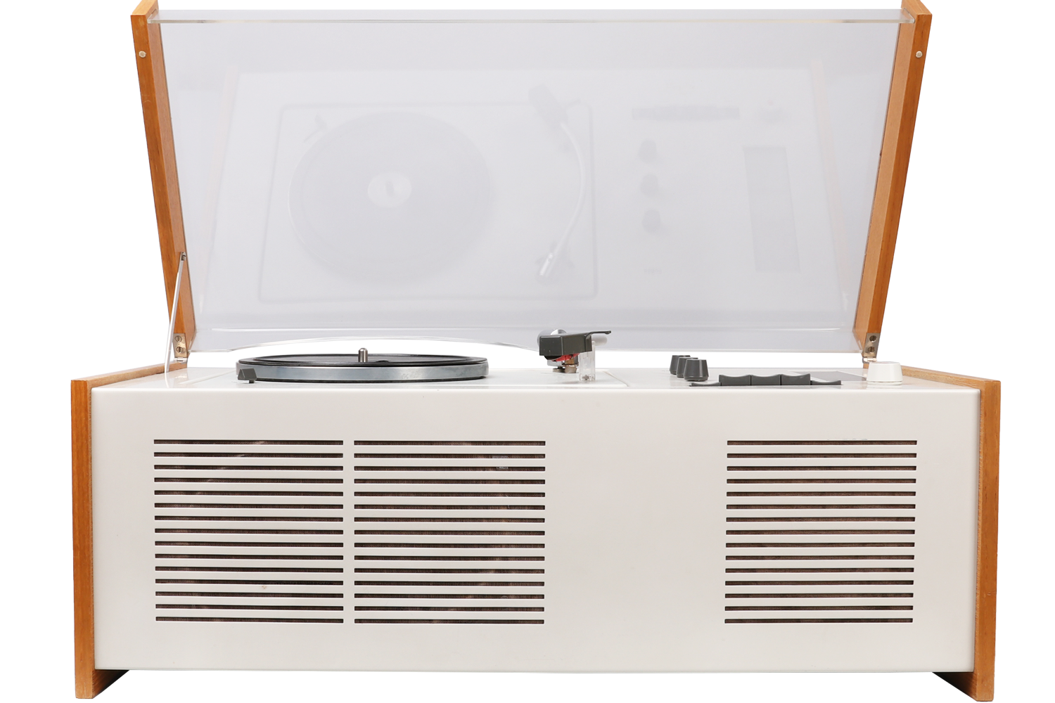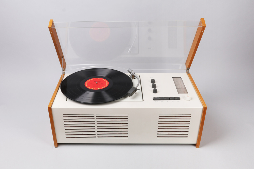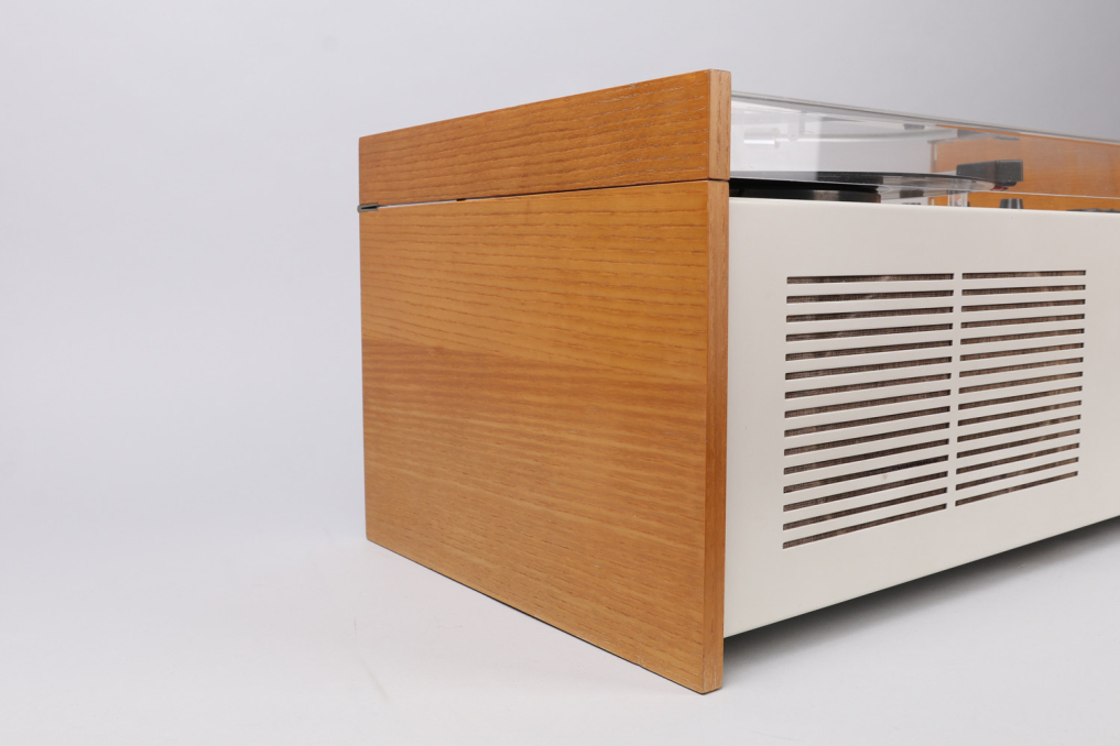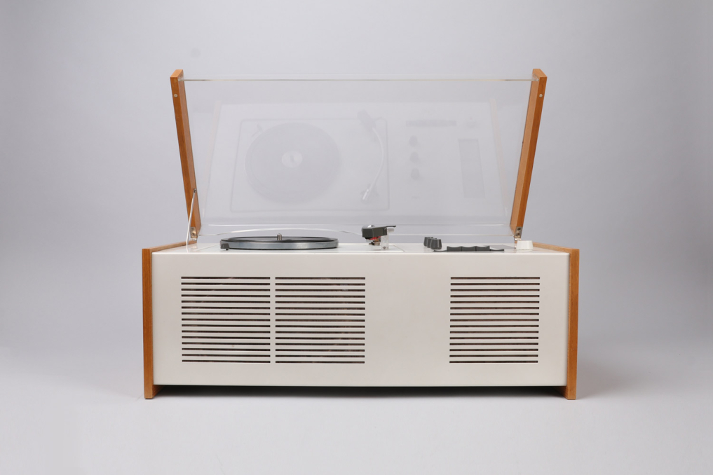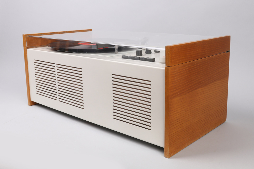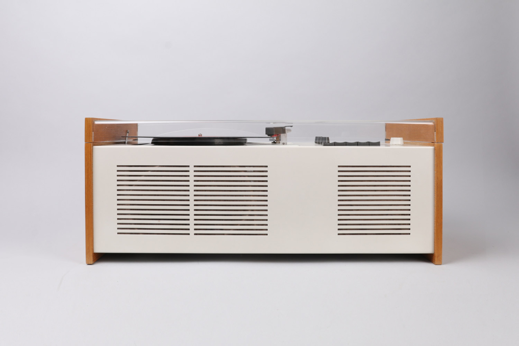 The legendary Braun SK 55 has been designed by Hans Gugelot + Dieter Rams, in 1963. It is equipped with a vinyl player, radio unit and a built-in Braun speaker box. The SK55 is an absolute beauty and design classic that you will find in MOMA and other museums. The radio part has been extended for longwave reception (LW). The PC3 SV turntable has been equipped with a stereo crystal pickup system and thus prepared for stereo playback (SV). The SK 55 remains a mono system. Condition: Very well preserved original condition. It has been reclaimed with great effort and care while making sure to preserve all original parts. The previous owner had taken very good care of and the plastic has almost no scratches. One of the dark graphite knobs and headshell have visible signs of use (see image). Please note that we are selling the SK55 as a decoration item. It is currently not functional. All parts original! Sold as a prestige design collectible.