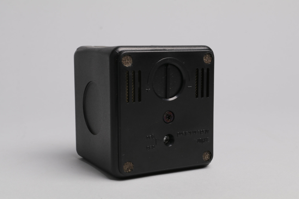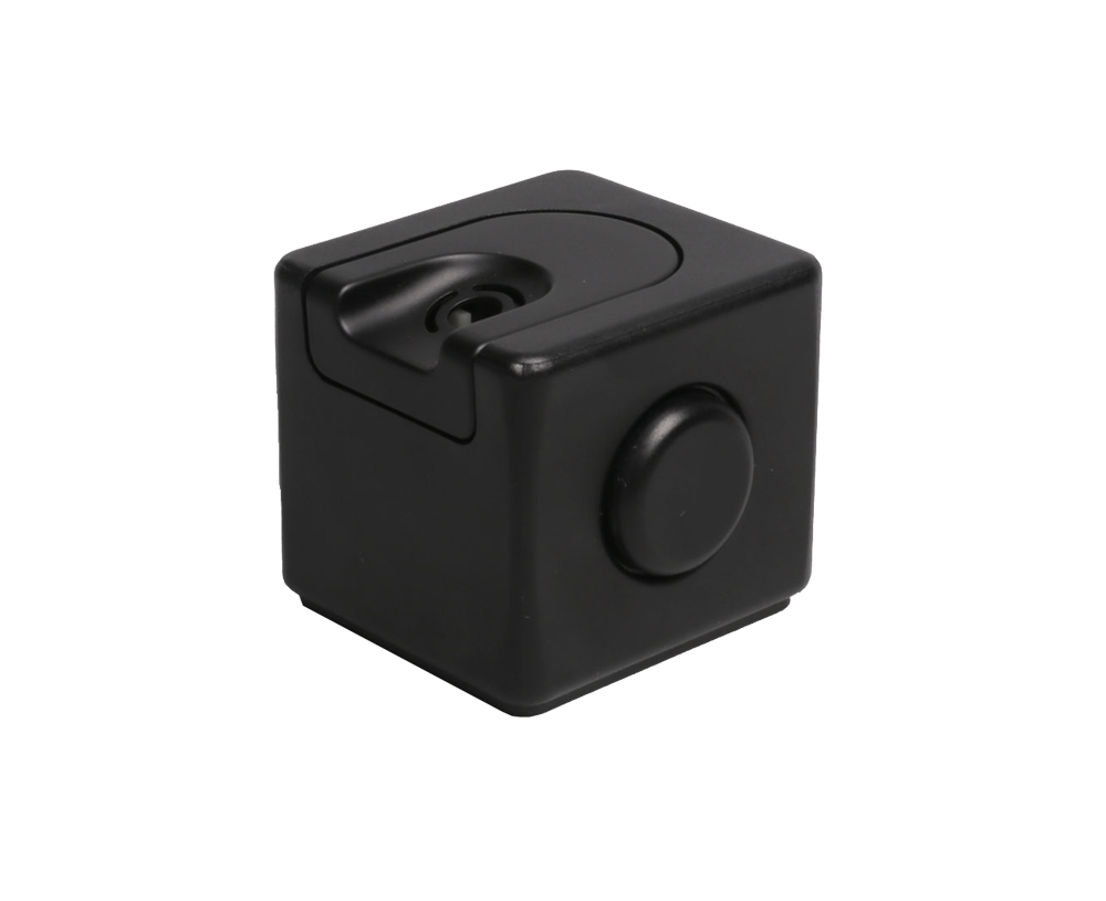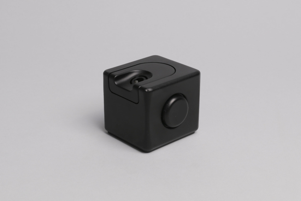 Black cubic Braun T4 table lighter designer by Dieter Rams in 1970 made of plastic with a metallic top. This particular model has a pronounced ignition button on the side, a piezo system and can be refilled with gas on the bottom. This is where you also find the control of the flame intensity. The condition is in excellent outer condition - the lighter has not been tested - sold as collector item.