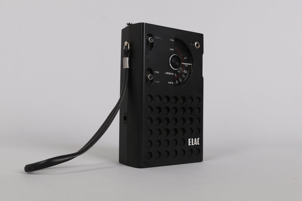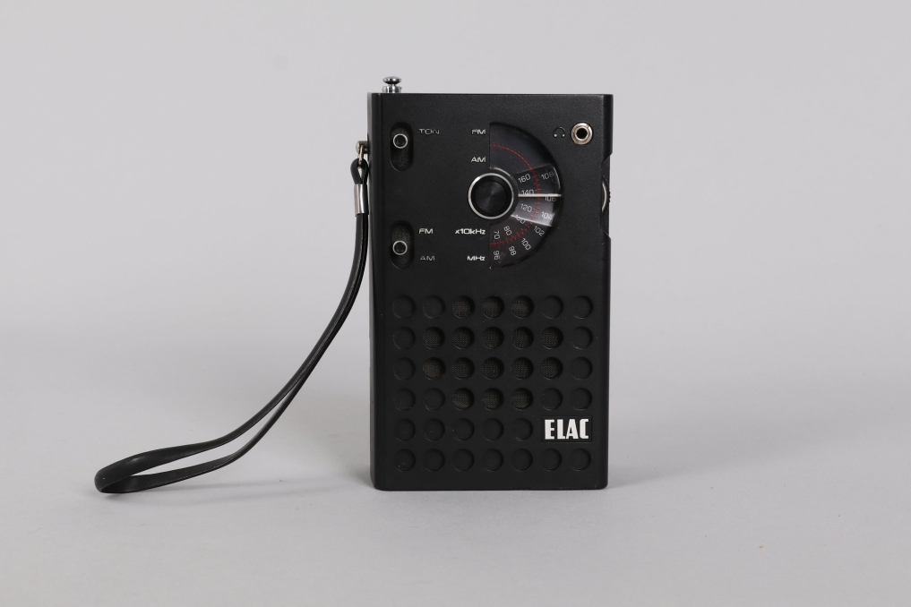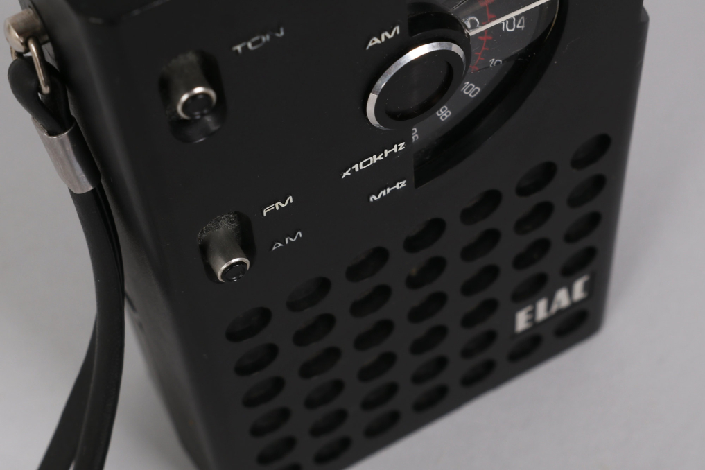 The ELAC PR80 is a beautiful minimalist compact FM/AM pocket radio designed in the mid-1970s. Manufactured by Elac Electroacustic GmbH, it features a sleek, portable design with a magnified tuning dial and dynamic loudspeaker. Beyond its high-quality sound and practical build, the PR80 gained historical significance when Queen’s bassist John Deacon repurposed its circuit board to create the legendary "Deacy Amp," a key element in the band's iconic guitar sound. 3