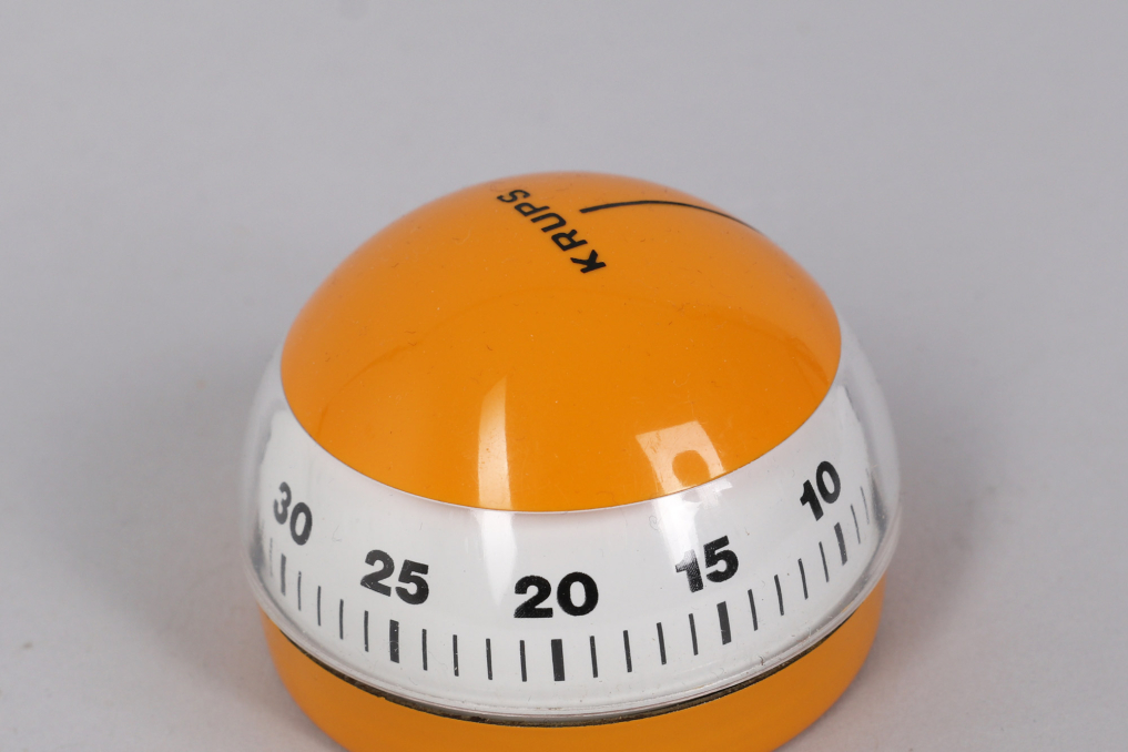 Original Yellow mechanical analog Krups Egg timer designed in 1970s - made in Germany. A beautiful timeless piece with an iconic ring sound. Perfectly working in great outer condition.
