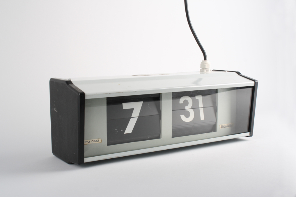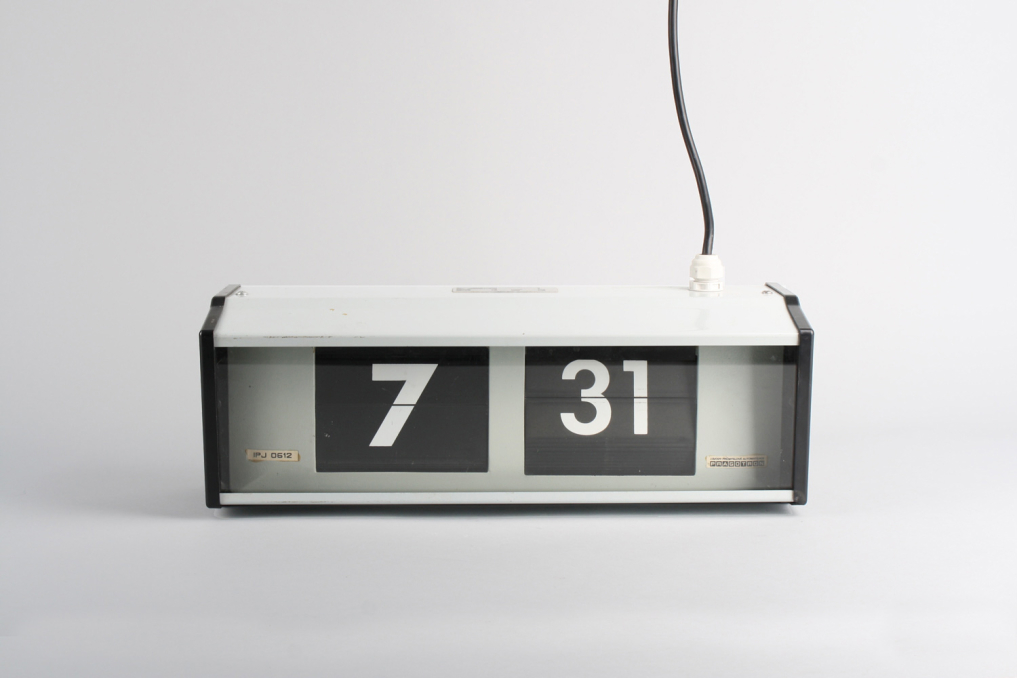 Vintage industrial interior Pragotron IPJ0612 flip clock. Designed and made in Czechoslovakia in 1980s. Converted to operate as an independent wall clock with cable & german plug for 220V. Condition: Partially renovated original.