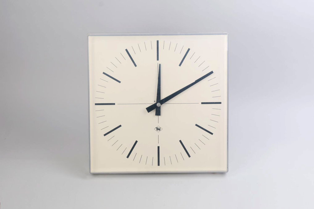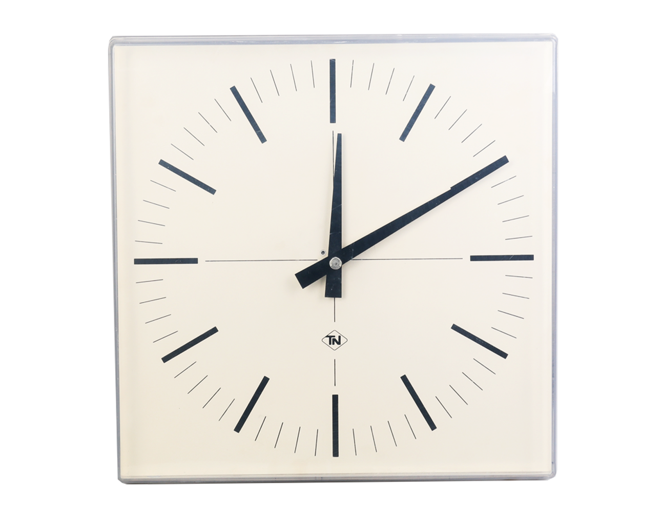 Large TN clock designed & made in Germany in the 1960s. The square clock is made of a transparent plastic body. Great outer condition: tiny scratches, working perfectly (new quartz mechanism (AA battery not included).